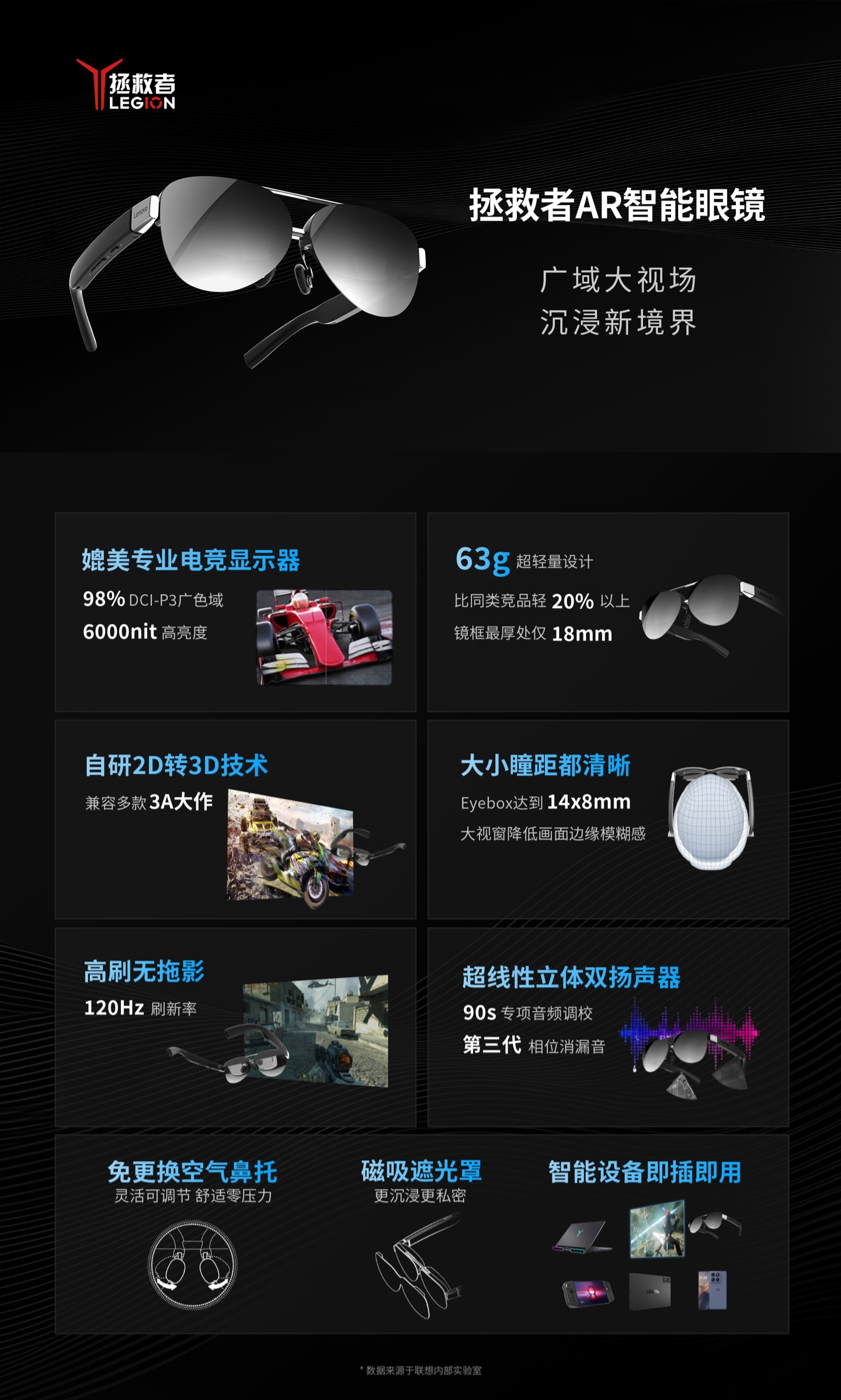 此外,联想还采用了自研 2D 转 3D 技术,IT之家所有文章均包含本声明。联想拯救者 AR 智能眼镜已于 7 月 18 日开售,